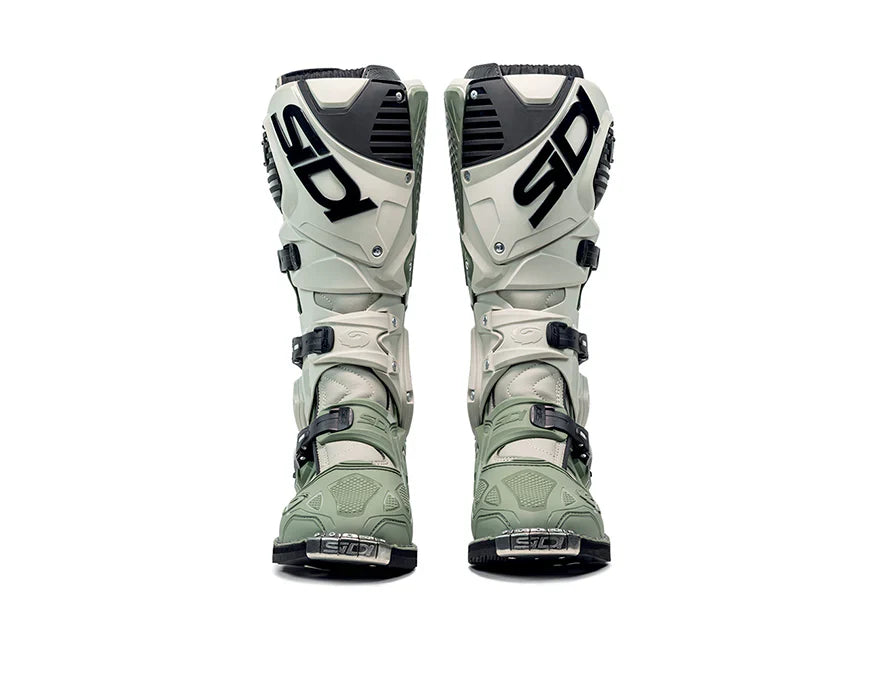Las Crossfire 3 TA emplean cuatro cierres de hebilla microajustables, cada uno con correas con memoria de regulación y hendiduras. Estas hebillas, junto con las correas y los clips de retención, se pueden reemplazar fácilmente. Las hebillas utilizan un único punto de fijación (mediante un tornillo), lo que facilita el cierre y la adaptación a la posición del piloto. Cabe destacar que las cuatro hebillas funcionan de forma independiente, lo que permite que la bota se adapte a diversas formas de pie y pantorrilla, garantizando la máxima comodidad para cada piloto.