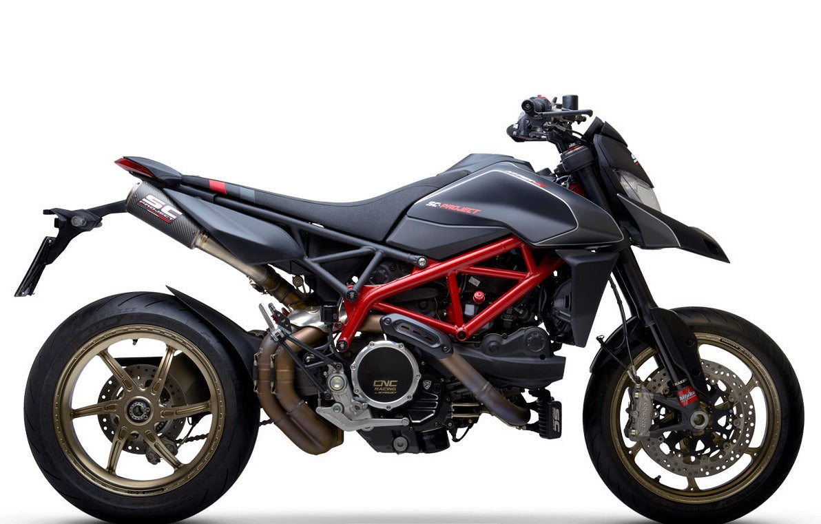 Por la experiencia del campeonato mundial ganado con Alex Marquez en Moto2, SC-Project presenta el nuevo silenciador CR-T M2. Desarrollado directamente por el departamento de carreras, para su Ducati Hypermotard 950. El cuerpo externo en fibra de carbono resistente a altas temperaturas, las tapas de titanio soldadas con T.I.G. y los casquillos de inserción en titanio mecanizados a partir de sólidos por maquinaria CNC, que garantizan acoplamientos perfectos, han sido probados en el Campeonato del Mundo de Moto2.