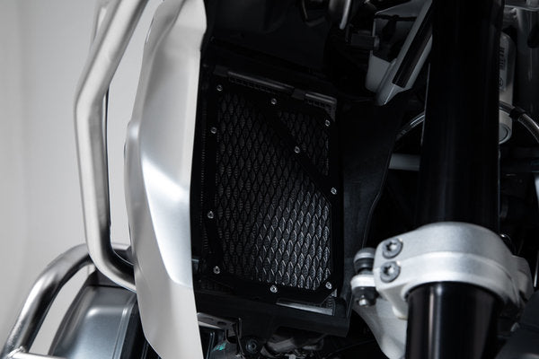 El protector, construido para encajar con la longitud de la clavija de la motocicleta, ofrece una dosis adicional de protección contra las rocas. La construcción robusta consta de un marco de aleación de aluminio y una rejilla que impide la entrada de rocas levantadas sin bloquear el flujo de aire hacia el radiador. La protección del radiador se puede montar rápida y fácilmente en los puntos de fijación originales. Todos los elementos necesarios para la instalación están incluidos en la entrega.